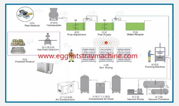 El flujo de trabajo de la línea de producción de bandejas de huevos de papel (Líneas de secador de horno de ladrillo/Sunshine/secador de horno de metal multicapa):