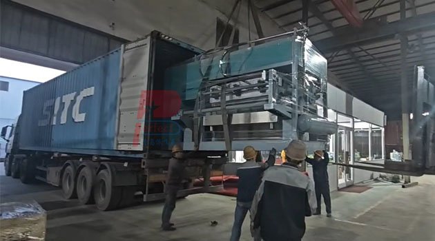30 de octubre de 2024, un cliente habitual de Filipinas compró una línea de producción automática de bandejas para cajas de huevos de 6000 piezas por hora con secador de horno de metal y terminó el envío.